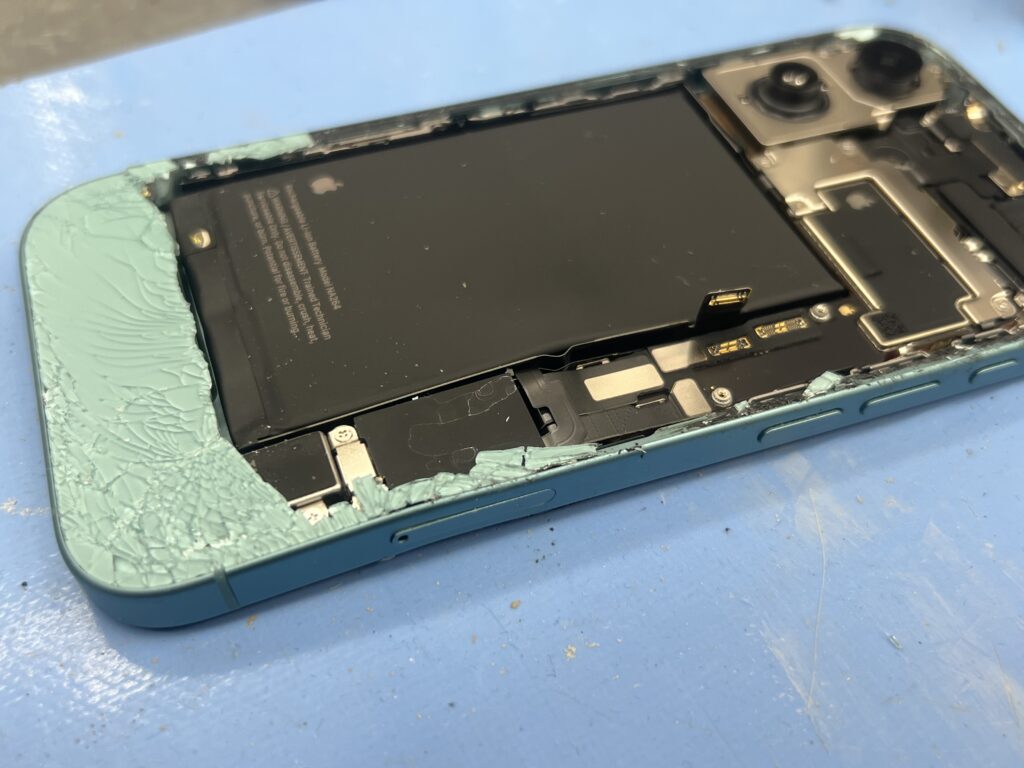 市川市湊新田より車に轢かれて破損してしまったiPhone16の修理のご相談を頂きました。