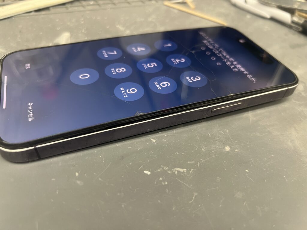 東京都江戸川区鹿骨より画面右側が浮いてきてしまったiPhone14ProMaxの修理のご相談を頂きました。
